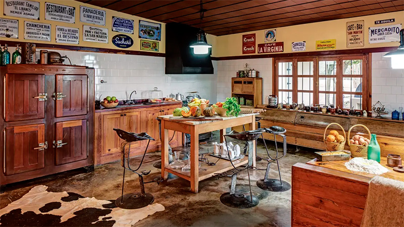-Sí. Quería que todo fuera armónico. El año que duró la obra me dediqué a buscar todos los muebles y objetos que ves ahora. Compré las alacenas de la cocina, los aparadores que después convertí en muebles de baño, los carteles antiguos, los sifones y todo lo que tuviera una onda bien campera. Por ese entonces, había un lugar frente al Mercado de Pulgas, Estilo Campo, que tenía muebles originales que hoy no se consiguen más. Les pedí prestadas un montón de cosas para el casamiento de mi hermana [Mónica (60) se casó por primera vez a sus 50 en el Campo Argentino de Polo y Pancho fue su wedding planner] y después traje todo para acá. Igual, todavía le falta un montón a la decoración. Siempre digo que debería instalarme un mes como mínimo para redondear conceptos. Mi próximo objetivo, de hecho, es armar una buena colección de mates y cuchillos.