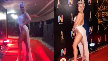 Es que la ex Chica del Clima se presentó con un vestido con un gran escote en la pierna, que dejaba ver que aparentemente no llevaba puesta ropa interior.
