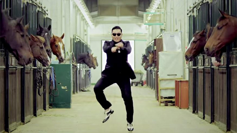 Tenía 35 años, su aspecto no era el de un galán de esos a los que el público sigue sin interesarle lo que canten, su voz lejos está de ser un prodigio y sus antecedentes no permitían creer que consiguiera algo más que repercusión en su país. No entra en el molde del típico ídolo teen del K-Pop. Pero su canción explotó gracias al video y en especial a la manera en que PSY bailaba en él: simular que se monta un caballo, cruzar los brazos por delante hasta levantar el derecho emulando el movimiento de un lazo.