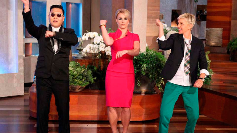 Psy les enseñó la coreografía a la conductora Ellen De Generes y a Britney Spears.