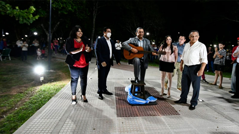El compositor y cantautor chamamecero, tiene su propia estatua en la plaza de la ciudad de Loreto. El homenaje se realizó con la presencia del músico. "Cada vez que venga a Loreto voy a venir hasta acá para saludarme", dijo entre risas.