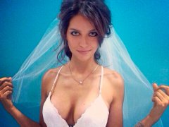 La modelo y conductora realizó una campaña publicitaria donde se la ve con poca ropa, de blanco y velo. Y fue inevitable que muchos se preguntaran si no era una indirecta para su novio, el tenista Pico Mónaco.