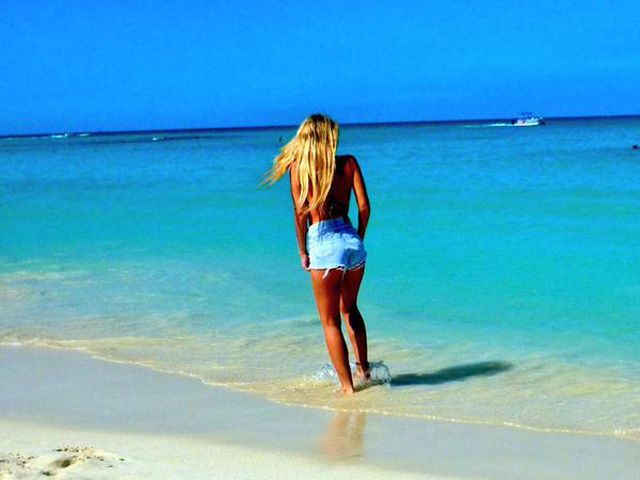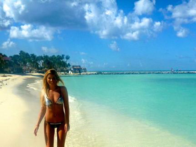 La rubia, fanática del Xeneize, compartió muchas fotos de las vacaciones que pasarno en una playa paradisíaca.
