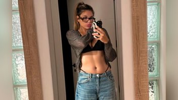 En uno de sus últimos posteos de Instagram, la influencer argentina aprovechó el reflejo de un espejo de pie para retratarse con un sugestivo atuendo, en el que dejó a la vista su ropa interior: un conjunto negro debajo de un jean ancho, del que sobresalen tiras de una tanga de tiro súper alto.