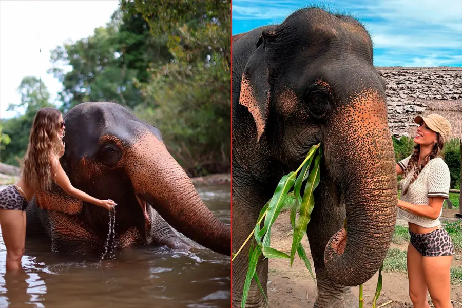 Durante su viaje por el sudeste asiático, Julieta Poggio visitó un santuario de elefantes en Tailandia, donde disfrutó de una jornada de contacto directo con los animales. La influencer compartió las imágenes en sus redes y fue celebrada por sus seguidores.