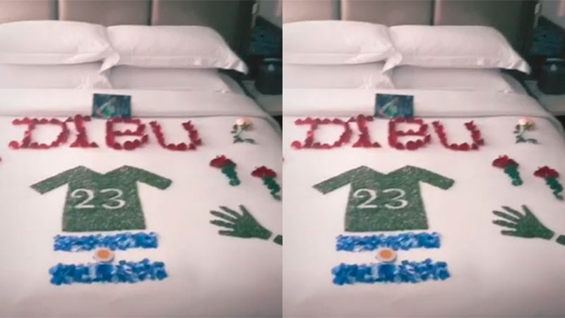 La esposa del arquero de la Selección Argentina, Dibu Martínez, le preparó una cama llena de pétalos de rosa.