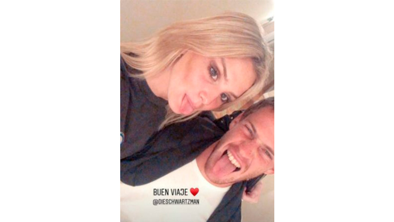 Eso quedó demostrado en las historias de Instagram de ambos, quienes publicaron una selfie donde se los ve sacando la lengua, de lo más divertidos y donde ella le deseó un buen viaje, junto a un emoji de un corazoncito. El, por su parte, publicó la misma foto y agregó el emoticón de una carita llena de corazones.