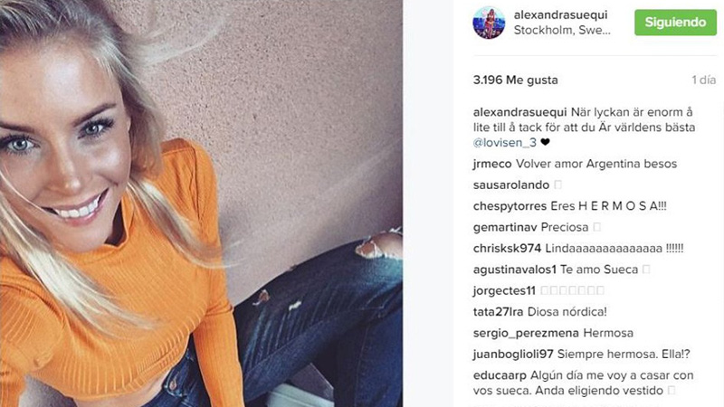 Alexandra ya está en Estocolmo. Llama la atención que, si bien escribe para que la lean sus compatriotas, la mayoría de los comentarios están en español. Claro, son de sus fans argentinos.