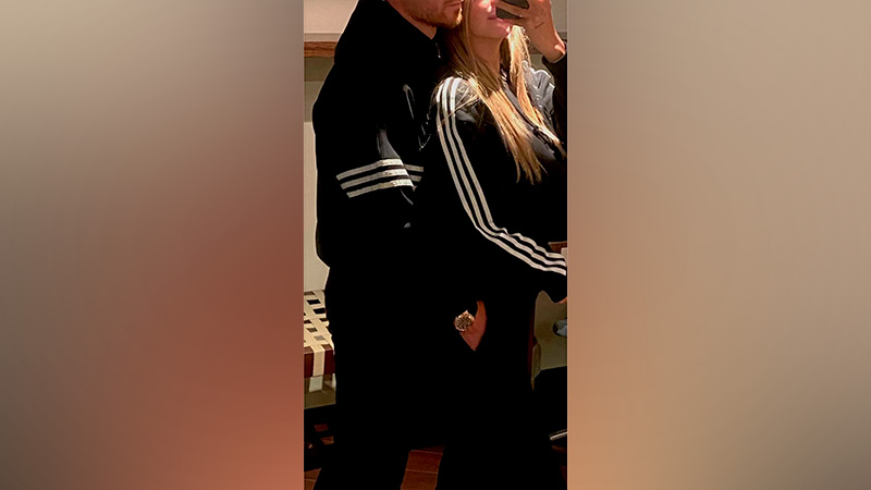 La diseñadora, que no dudó en instalarse con él en Inglaterra, mostró una selfie de ambos frente al espejo posando bien pegaditos, con un look deportivo similar de una famosa marca alemana, la favorita de los dos.