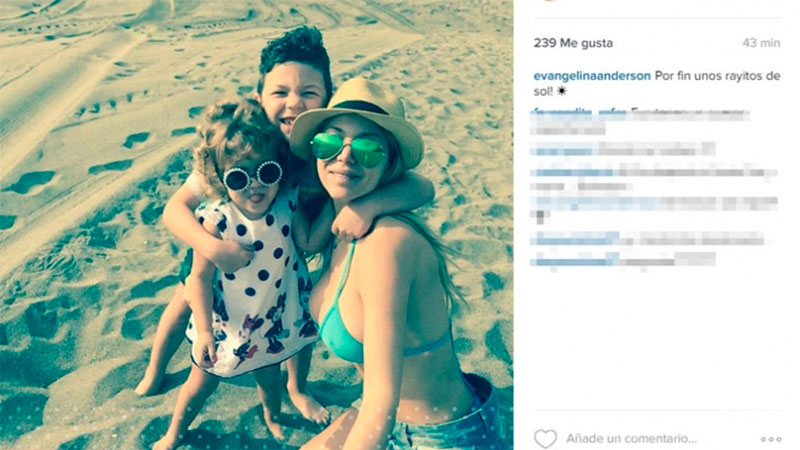 Esta vez, la modelo compartió una serie de fotos desde la playa -sin aclarar en qué lugar del mundo fueron tomadas- en la que se la disfrutando de la arena y el mar junto a sus hijos, Bastián (6) y Lola (2): "Por fin unos rayitos de sol", escribió Eva junto a las imágenes.