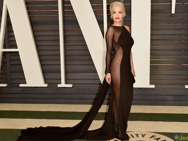Rita Ora fue un poco más osada en el tercer vestido que usó en la noche (había llegado con uno para la Alfombra Roja y cuando le tocó cantar se calzó uno distinto). Al evento de Vanity Fair apareció con un diseño de Donna Karan y los fotógrafos empezaron a disparar sus cámaras. A diferencia del de Shayk, el de la británica de 24 años tenía la transparencia del lado derecho y parte de su cola no estaba cubierta. Cuando posó para las cámaras, se puso de espaldas y miró por arriba de su hombro derecho, en pose seductora, robándose todos los flashes de la noche.