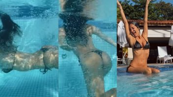 La morocha compartió un video mostrando cómo pasar del cuarto a la pileta en un solo paso y se robó las miradas bajo el agua.