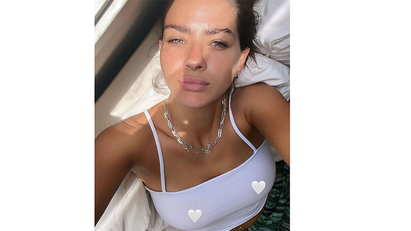 La actriz aprovechó para posar en una selfe dominguera que se robó todos los suspiros por parte de sus admiradores. Publicó una foto con un top blanco traslúcido y tuvo que usar emojis para evitar la censura.