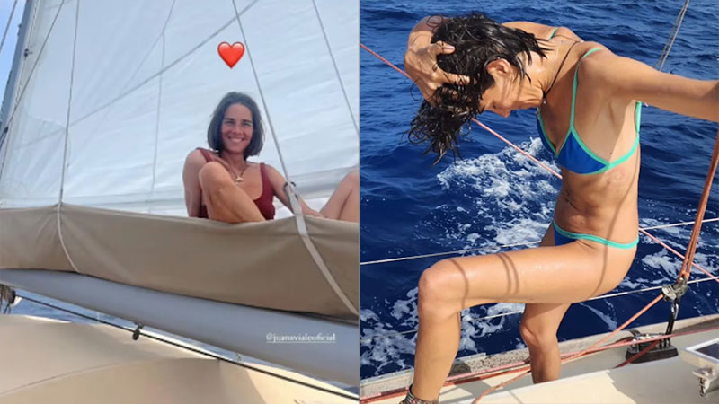 “Salimos de Islas Canarias, cruzamos el Ecuador hoy que hicimos la ceremonia, ya que al cruzar hay que hacerle una a Neptuno para que te permita navegar. Ahora aprovechamos que no hay viento y nos tiramos unos chapuzones”, le contó Juana a Mirtha en plena comunicación.