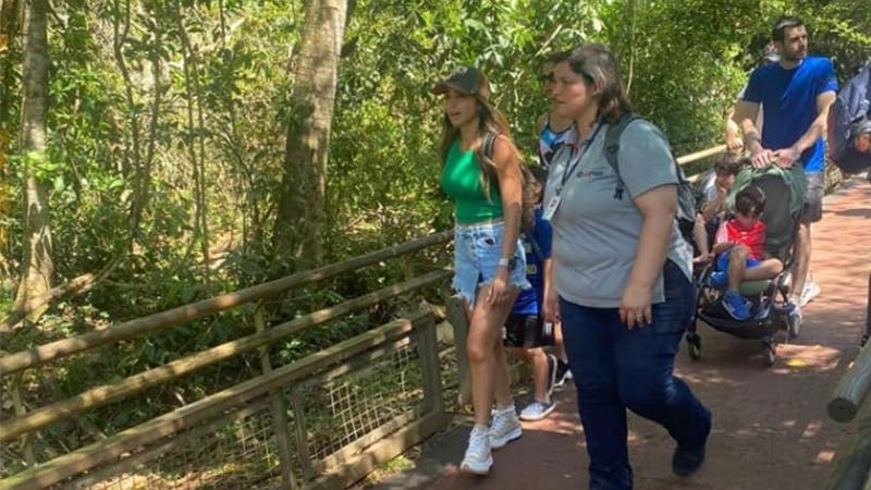 Sin guardaespaldas, la esposa de Lionel Messi paseó por el Parque Nacional Iguazú junto a sus tres hijos. En una de las pasarelas del lugar, accedió a fotografiarse con algunos estudiantes pero pidió que no filmen a los herederos del 10.