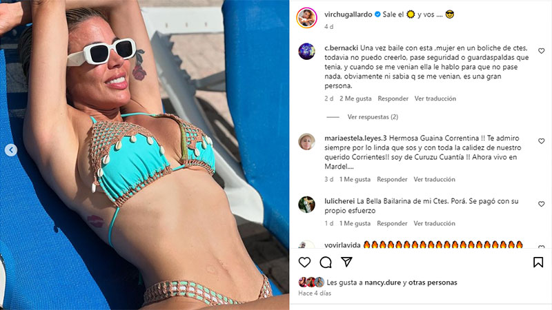 “La modelo no conoce de límites y siempre va por más a la hora de crear sus propios looks. Dueña de un estilo único, sus looks pisan fuerte y marcan tendencia. En esta ocasión, Virgina Gallardo dio cátedra de sensualidad con un traje de baño que dejó sin palabras a todos”, resaltó el portal Vía País.