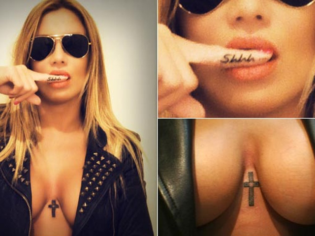 Se tatuó su cuarto y quinto diseños: un “shhh”, en su dedo índice derecho y una pequeña cruz, en medio de sus pechos. "Quería hacerme una cruz en un lugar que no lo tuviera todo el mundo y me pareció que quedaba lindo", explicó.