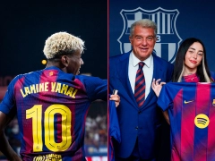 Lamine Yamal y Nicki Nicole. Foto: X oficial de FC Barcelona.