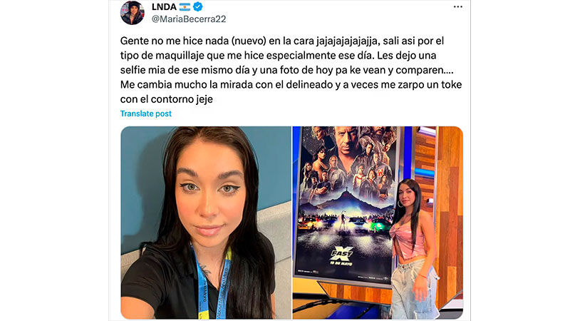 Frente a las diversas reacciones, la artista se tomó con humor la situación y negó cualquier tipo de retoque reciente. “Gente no me hice nada (nuevo) en la cara jajaja. Salí así por el tipo de maquillaje que me hice especialmente ese día. Me cambia mucho la mirada con el delineado y a veces me zarpo un poco con el contorno”, explicó, compartiendo dos fotos de días diferentes para comparar cómo afecta el tipo de maquillaje que usa. Fuente: (Tn)