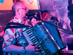 Fueron casi cinco minutos del primer tema y con el correr de los compases se pudo ver como dejaba atrás la difícil tarea de reemplazar a Cacho Deicas. Por su parte, el público acompañó cada frase y grandes y chicos se movían al ritmo de López y la banda entera.