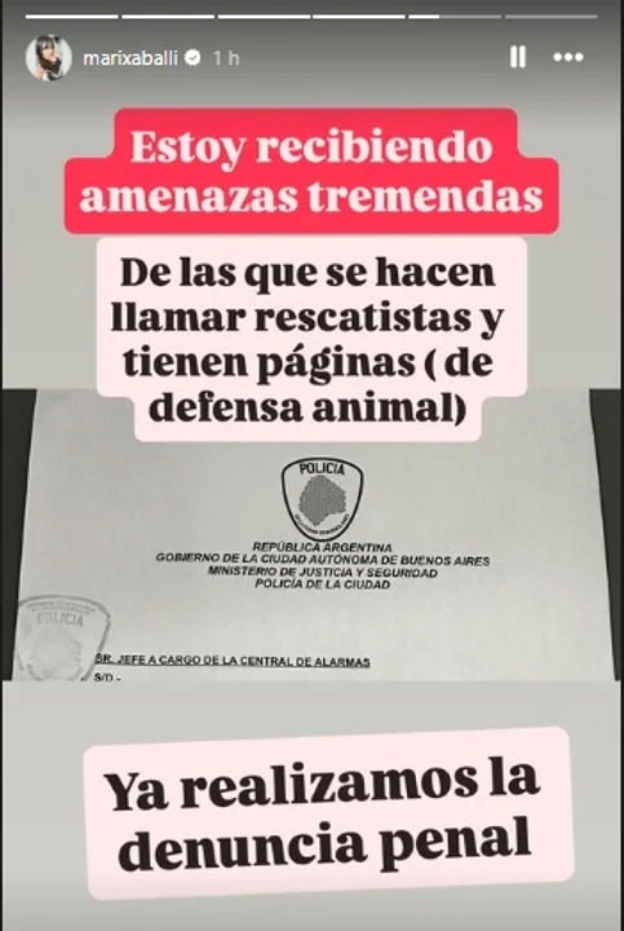 "Estoy recibiendo amenazas tremendas de las que se hacen llamar rescatistas y tienen páginas (de defensa animal). Ya realizamos la denuncia penal", contó la mediática desde sus plataformas digitales, donde expuso con valentía la situación que atraviesa por su implicación en el caso.