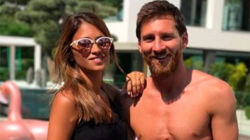 Messi, con un corazón acompañando el posteo, publicó una foto junto a su mujer, en malla y sin remera, mostrando sus abdominales trabajados, dejando aparecer parte de su nuevo tatuaje - un beso- y abrazando a Anto como solo él lo puede hacer: sí... con la manito en la cola.