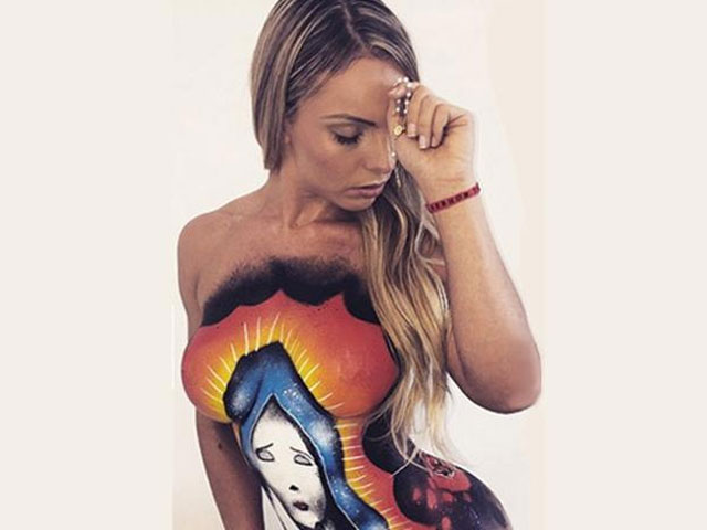 En los últimos días, la brasileña galardonada por tener el mejor trasero de su país ha causado controversia en su cuenta de Instagram, primero al mostrar en sus glúteos un tatuaje del equipo de futbol Barcelona, luego por aparecer en la playa en topless, después por aparecer semidesnuda y bañada de chocolate, disfrazada como conejo de Pascua, y finalmente con su body paint de la Virgen.