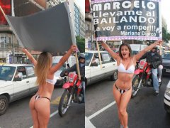 Mariana Diarco quiere estar en la próxima temporada de Bailando por un sueño. Por esta razón decidió hacer una llamativa campaña en ropa interior en la Avenida 9 de Julio.