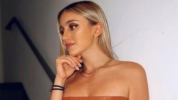 La rubia se prepara para el Mundial de Qatar 2022. Parada en una escalera posó mientras una amiga suya la fotografiaba. Se mostró con un top estilo Corset y un pantalón tiro alto. Todo de color marrón.