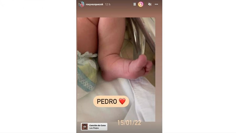 "Pedro", fue lo que escribió Roxy Vázquez junto a un corazón y la foto del pie del pequeño. La periodista acompañó la tierna postal con el tema canción de cuna, de Los Piojos.