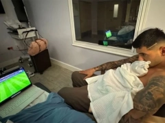 Karen Cavaller, esposa del defensor, compartió una foto y escribió: "La princesa de papá". En la imagen estaba el Cuti con la bebé en brazos, mientras desde el sanatorio miraba el partido de Argentina y Perú en una computadora.
