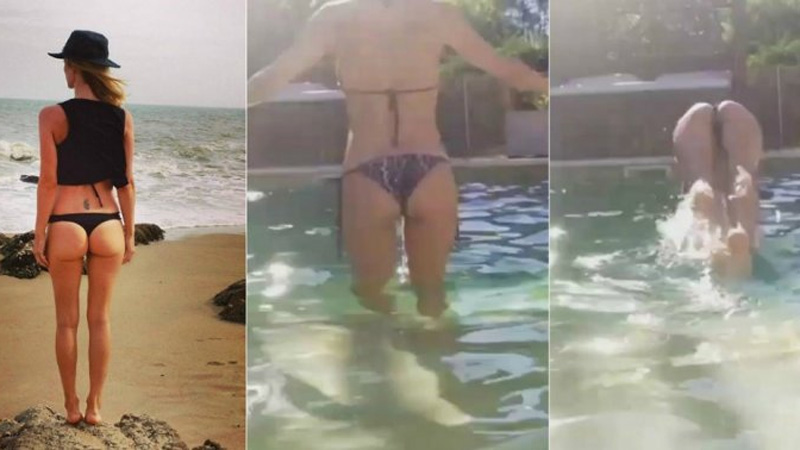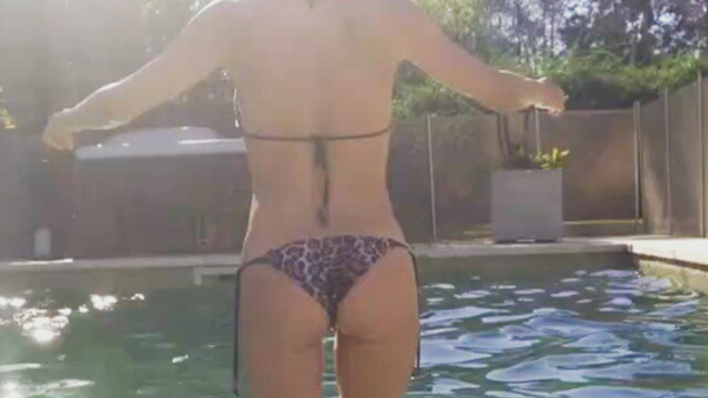 Ahora la modelo redobló la apuesta y compartió un video hot de ella metiéndose a la pileta.