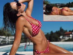 A través de sus redes sociales, la bailarina aprovechó para compartir con sus seguidores una imagen que rápidamente causó furor. En ella, se la puede ver recostada de lado en la pileta de la casa que alquiló en Córdoba, luciendo un look veraniego que incluyó un bikini a cuadros y unas gafas de sol.