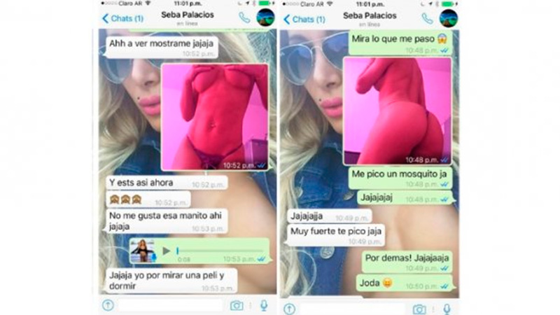 Por estas horas se conocieron varios chats privados entre ellos donde el jugador de Boca se muestra más que interesado en la rubia y ella le manda varias fotos.