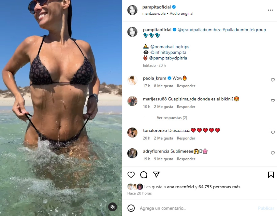 Antes de mostrar su trikini con tachas, solo Pampita lució otro de sus looks de verano. Desde un yate de lujo, se lució con una microbikini clásica con corpiño triangular de breteles finos y bombacha colaless, su fórmula favorita. El estampado, en tanto, se robó el protagonismo: eligió un diseño animal print de leopardo, clásico de todos los tiempos que este año volvió con todo, en negro y marrón.