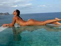 Estrenó una trikini negra con tachas de su colección desde un lujoso hotel en Ibiza. Pero también deslumbró a sus seguidores con otros trajes de baño que sacaron, una vez más, a relucir sus curvas.