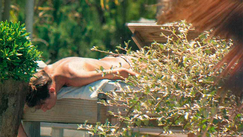 Por otro lado, la modelo lució diversos trajes de baño que dejaron a la vista de todos su belleza, aunque se la notó un poco más delgada de lo habitual. En la secuencia fotográfica de la revista Gente se puedo apreciar la figura de Pampita desde un ángulo especial. Sí, una foto indiscreta la tuvo como protagonista. En la imagen se la ve con un bikini de leopardo, con su cola apuntando al sol, a punto de recostarse en la reposera. Siempre coqueta y para evitar las marcas, Pampita hizo un topless cuidado para broncear parejo su espalda.