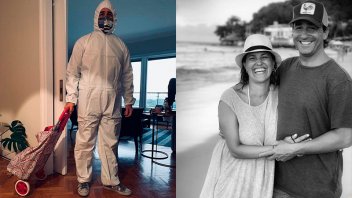 Durante esta cuarentena tanto la conductora como su pareja tienen que salir de sus casas para ir a sus trabajos. Lagarza es dueño de una clínica y, este sábado, subió una postal de cómo sale vestido de su hogar con todas las medidas de precaución posible para evitar contagio.