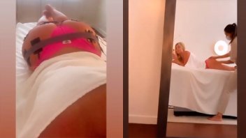 En los videos se ve a la esposa de Mauro Icardi recostada en una camilla con electrodos en los glúteos que la ayudan a volver más turgente la zona y sometiéndose también a unos masajes manuales para levantar la cola.
