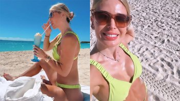 Jesica Cirio se encuentra de vacaciones y eligió un traje de baño diminuto de color verde que encandilaba acompañado de su belleza.