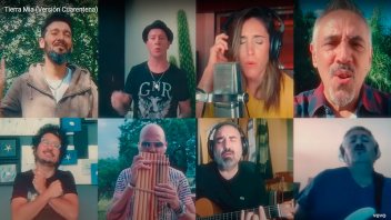 "A lo largo de los 4 minutos que dura la interpretación, cada uno desde el lugar donde afronta la cuarentena, le pone su pasión y compromiso a este mensaje: "Somos nada en este mundo y de nada somos dueños, todo nace de tu centro Tierra Mía. . . ", finalizó el comunicado. (Télam)
