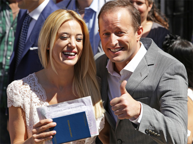 La modelo y el Diputado Nacional dieron el "Sí, Quiero" en el Registro Civil de Lomas de Zamora. Hubo un operativo de seguridad. Los testigos fueron Priscilla, prima de Cirio, y el intendente del Partido de la Costa, Juan Pablo de Jesús.