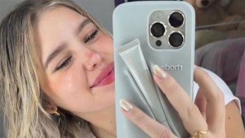 La rubia lució un crop top blanco con el estampado de un corazón rojo en el centro. En la parte de abajo, en tanto, usó una microtanga diminuta en color negra con detalles de aberturas en la parte delantera y arandelas de tono plateado.