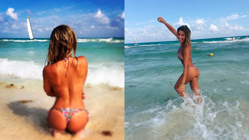 Las postales del viaje inundaron las redes sociales de Laurita, que lució un lomazo increíble en bikini: "Cuando querés posar para una foto y el mar te sorprende", escribió junto a dos fotos de un divertido blooper que la muestra siendo arrastrada por una ola en la orilla en plena sesión sexy.