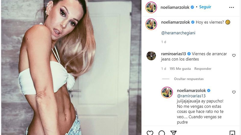 Noelia Marzol compartió una foto suya y provocó la picante reacción de su novio, Ramiro Arias. Y ella luego le escribió: “Ay papucho. Hace rato no te veo. Cuando vengas se pudre”.