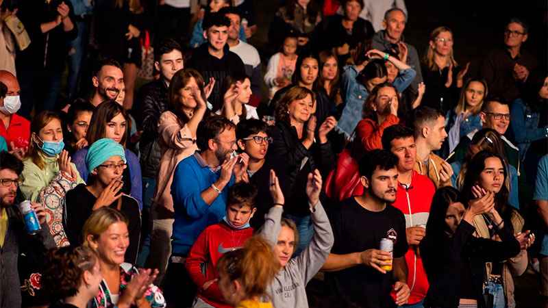 La Banda de Música de la Policía de Entre Ríos inició su presentación minutos después de las 22. El grupo deleitó con su música a todos los presentes, quienes los ovacionaron desde el predio.
