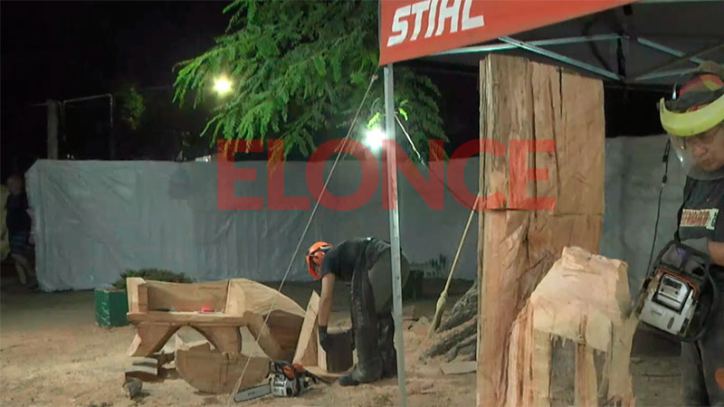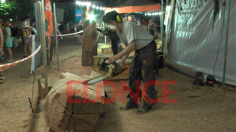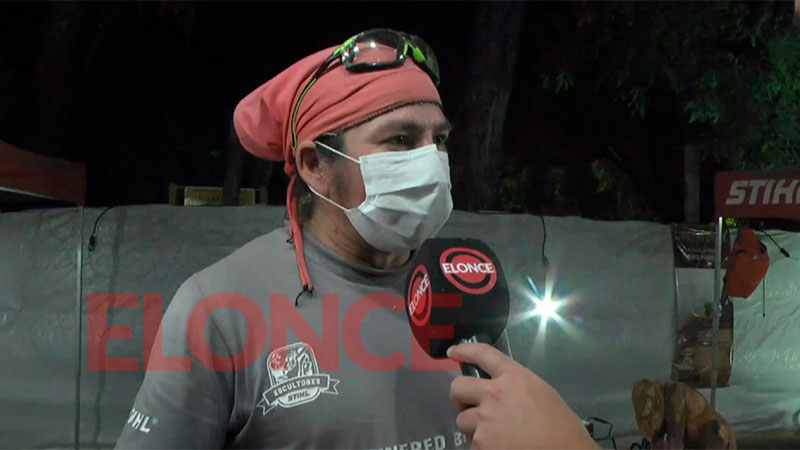 José Pérez, de Jujuy contó que participa hace siete años del evento. “Después de dos años, volvimos para disfrutar de la noche”. Hace tres días que están trabajando y la técnica que utilizan es “talla directa con motosierra”, contó.