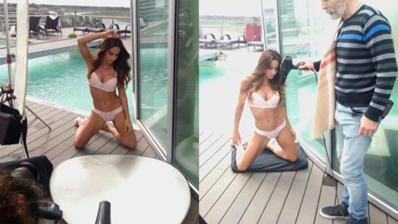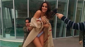 Desafiando la lluvia y el frío de estos días, ella hizo una producción de fotos al aire libre para una marca de ropa interior. Y levantó la temperatura.