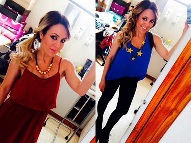 Ella demuestra día a día su sensualidad con selfies tomadas en su camarín de América. Con el clásico “Look #Intrusos de @SwamiOficial”, la rubia deleita a sus más de 300 mil seguidores de Twitter.