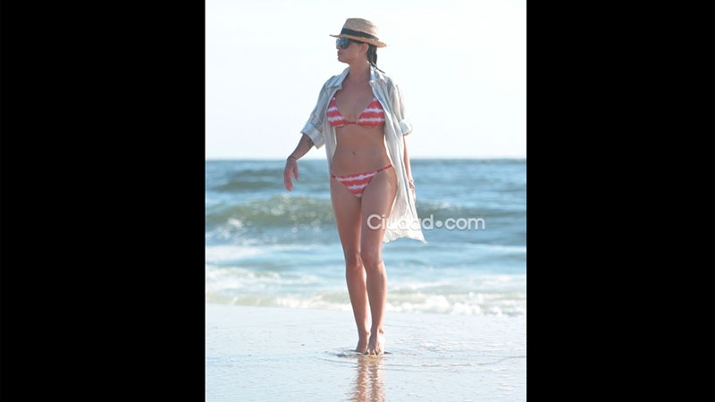 Sexy y elegante, Saravia cultivó un look playero muy chic en la costa uruguaya. La modelo lució un sensual bikini que combinó con una camisola, sombrero e infaltables gafas oscuras. El incesante ir y venir de su manta al mar, y del mar a su manta hizo voltear cabezas en el balneario y cosechó más de un piropo.